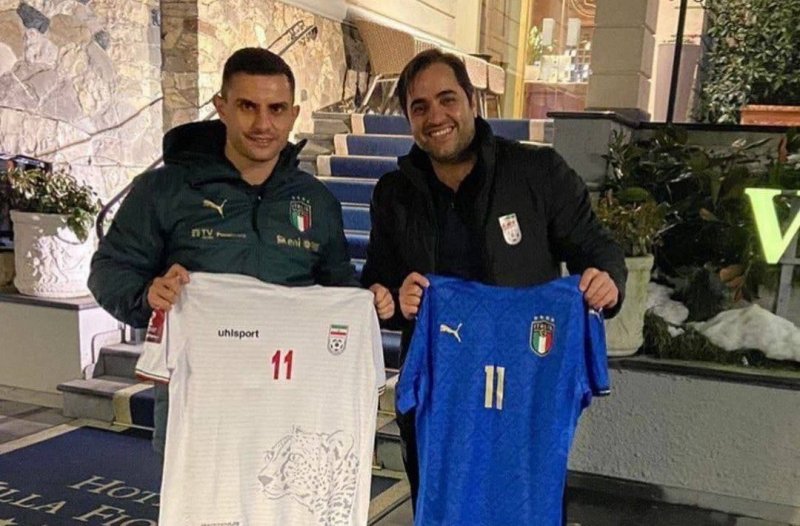 اما اتفاقی که در بازی دوستانه بین ایتالیا و ایران رخ داد جالب توجه و جای تامل دارد.مربی دروازه بان های تیم ملی که نقشی فراتر از یک مربی ساده را دارد و بیشتر به عنوان مترجم در سفرها استفاده می شود بعد از پایان بازی با ایتالیا پیراهن شماره ۱۱ تیم ملی که برتن حمزه کدخدایی بود را با پیراهن بازیکن شماره ۱۱ ایتالیا عوض می کند تا به یادگار نگه دارد.