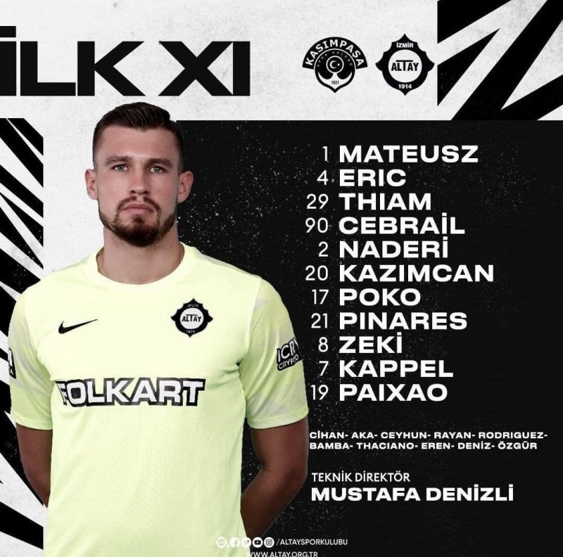 محمد نادری که پس از پنج مسابقه دوری از فهرست آلتای اسپور به دلیل آسیب دیدگی در سه دیدار اخیرشان به میدان رفته، امروز هم در ترکیب ابتدایی بازی مقابل کاسیم پاشا دیده می‌شود.