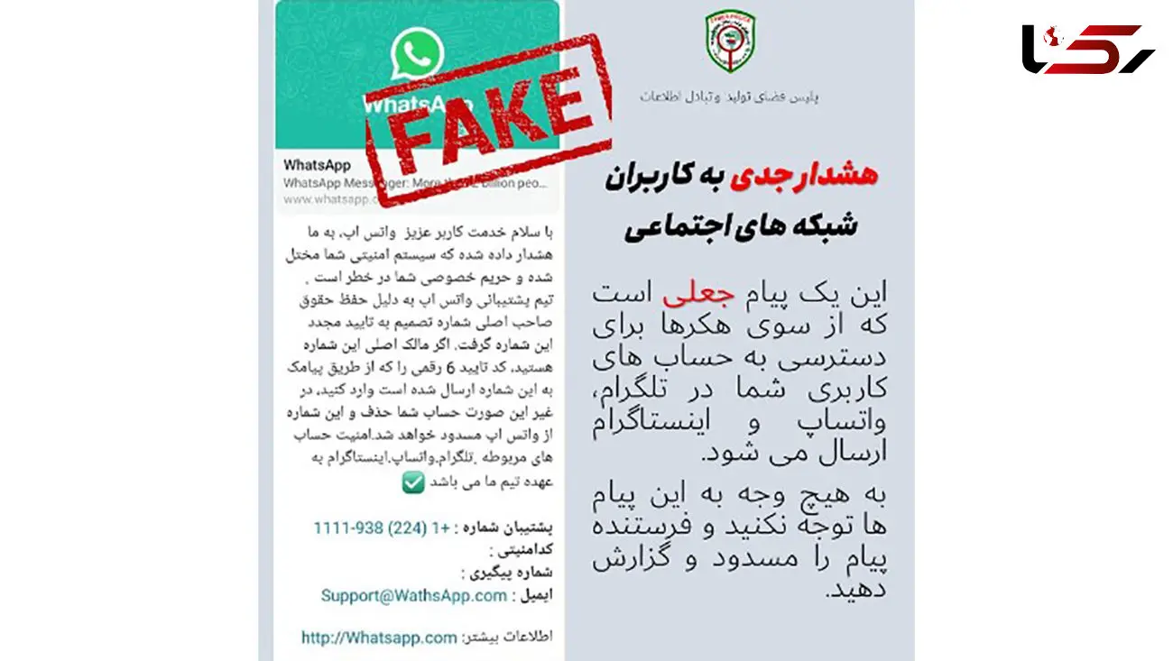 این یک پیام جعلی است که از سوی هکرها برای دسترسی به حساب های کاربری شما در تلگرام، واتساپ و اینستاگرام ارسال می شود.