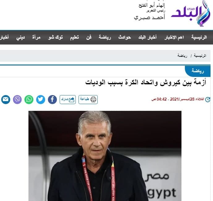 به گزارش "ورزش سه"، کارلوس کی روش سرمربی پرتغالی مصر روز گذشته و در جلسه ای که با مدیران فدراسیون فوتبال این کشور برگزار شده، از دست آنها خشمگین شده است. محمد شبانة روزنامه نگار مصری مدعی شده در جلسه روز گذشته این مربی پرتغالی بابت عدم برگزاری دو دیدار دوستانه به شدت عصبانی شده است.