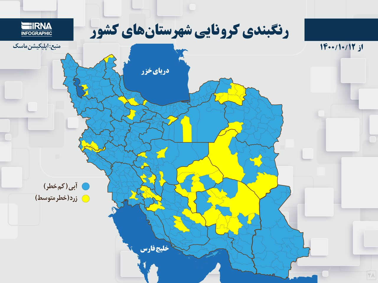 رنگبندی کرونایی شهرستان‌های کشور از (۱۴۰۰/۱۰/۱۲)