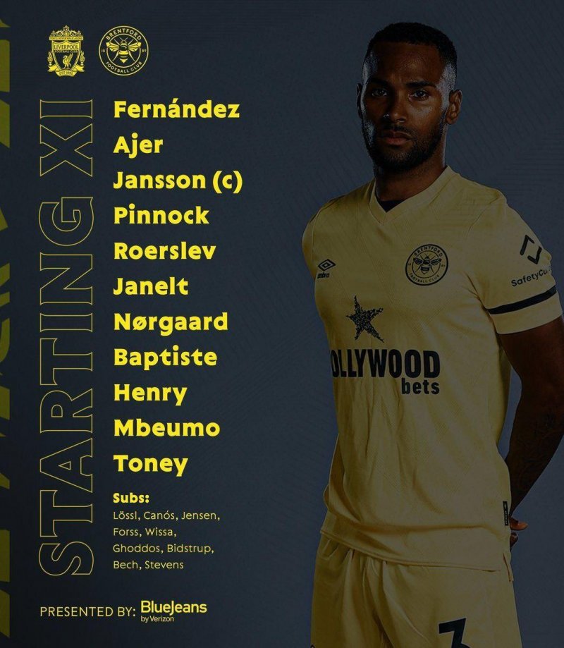 تیم فوتبال برنتفورد که در دیدار هفته گذشته شکست خورد، در حال حاضر با ۲۳ امتیاز در رتبه چهاردهم جدول لیگ برتر انگلیس قرار گرفته که در صورت پیروزی برابر لیورپول موقتا به رده دهم میرود.