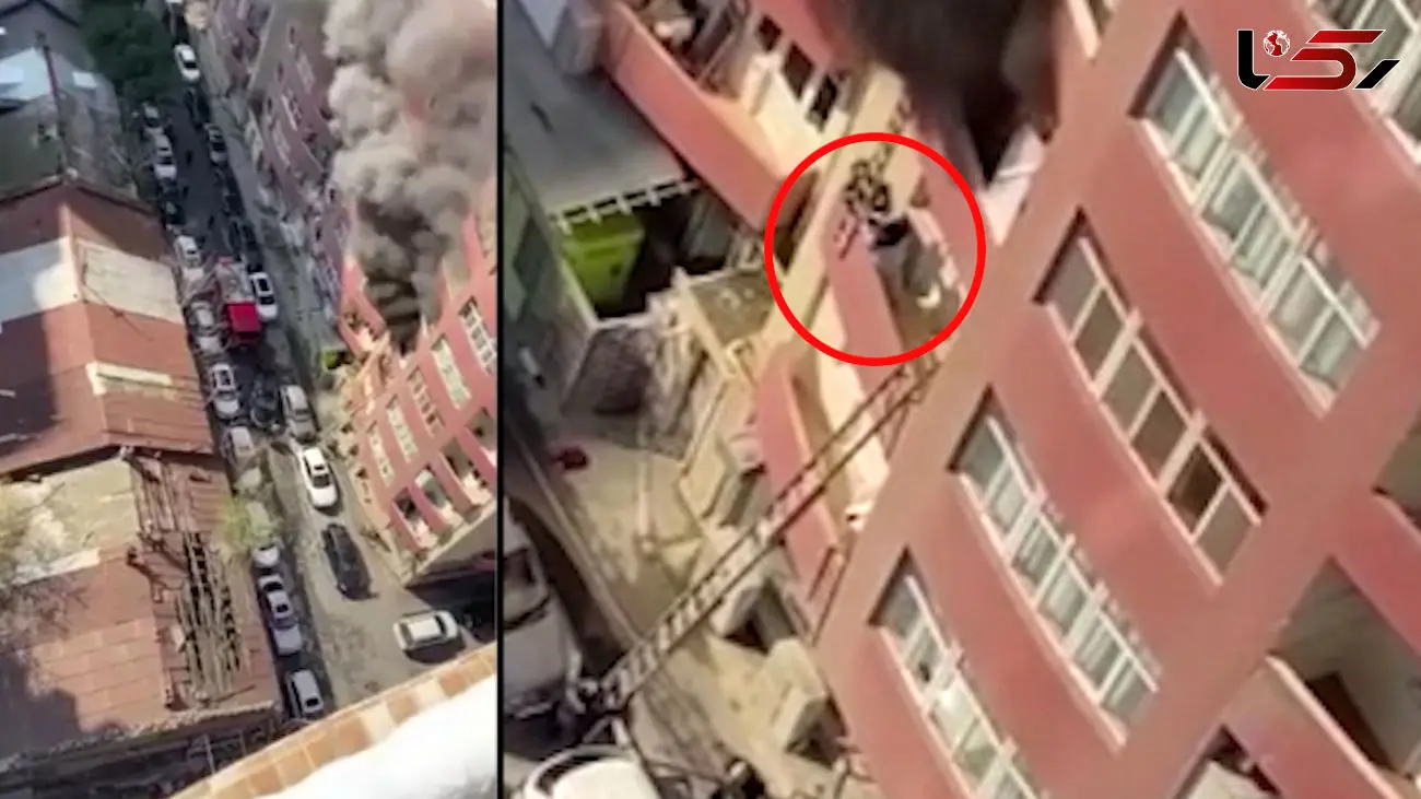 فیلم لحظه فرار یک مرد از آتش برج مسکونی/ سقوط مرگبار بود