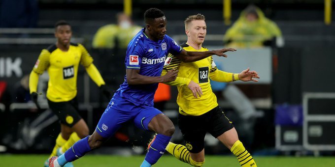 در همان دقیقه 10 بود که مانوئل آکانجی به اشتباه دروازه دورتموند را باز کرده و اجازه داد لورکوزن به صورت اتفاقی از حریف خود پیش افتد. اما بازیکنان لورکوزن خیلی زود لطف دورتموند را جبران کردند و در دقیقه 17 فریمپونگ به اشتباه دروازه خودی را باز کرد.