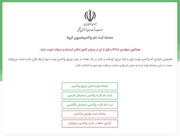 وی ادامه داد: این افراد پس از مراجعه و ارائه مدارک کارت خارجی واکسن خود که تاریخ و نوع واکسن در آن درج شده به انضمام تصویر پاسپورت، می توانند مراحل دریافت کارت واکسن را طی کنند.