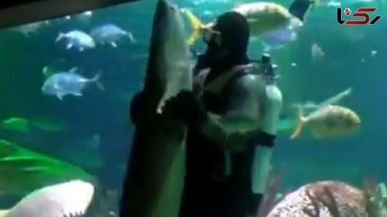 نمایش دیدنی غواص و کوسه ماهی + فیلم