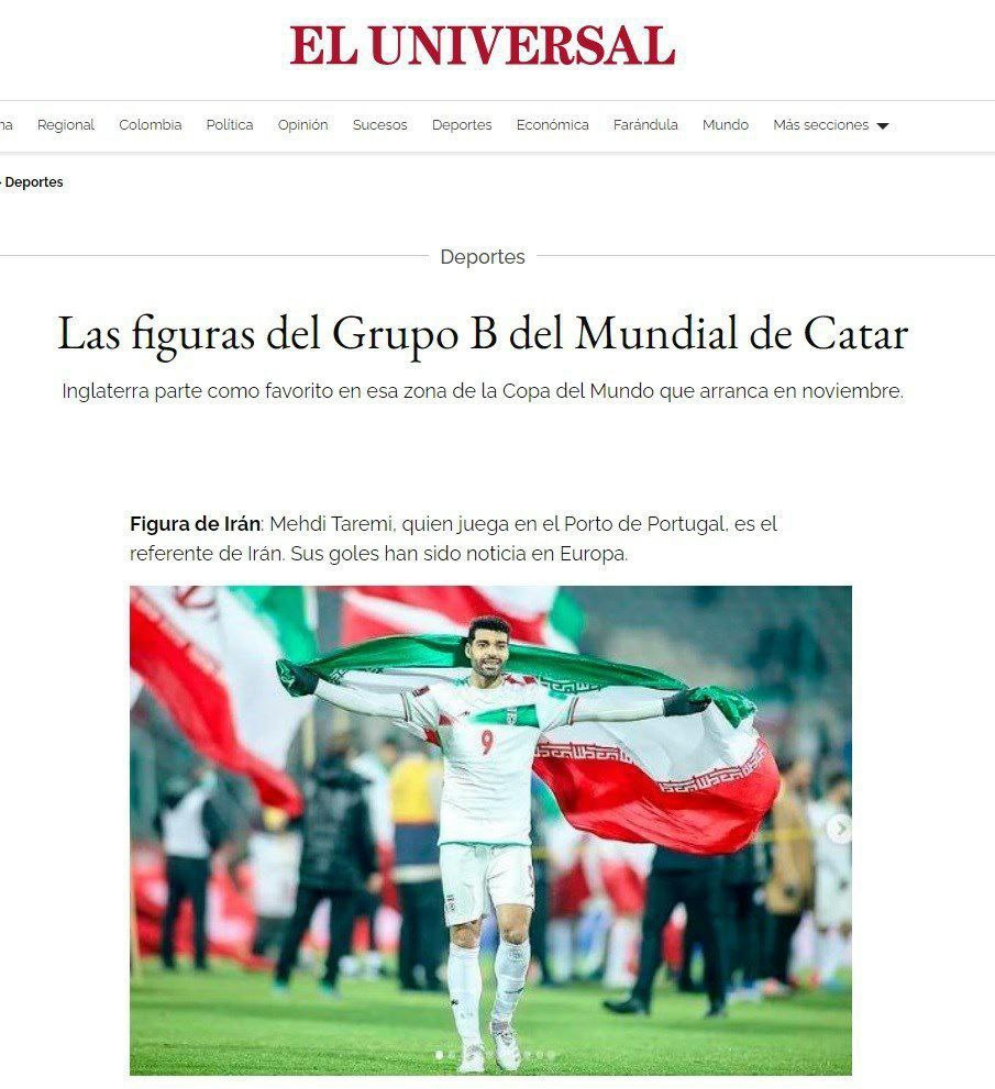 این رسانه مکزیکی با اشاره به مهاجم ایران نوشت: «مهدی طارمی که در پورتوی پرتغال بازی میکند، ستاره تیم ملی ایران است و گلهای او در اروپا خبرساز بوده است»
