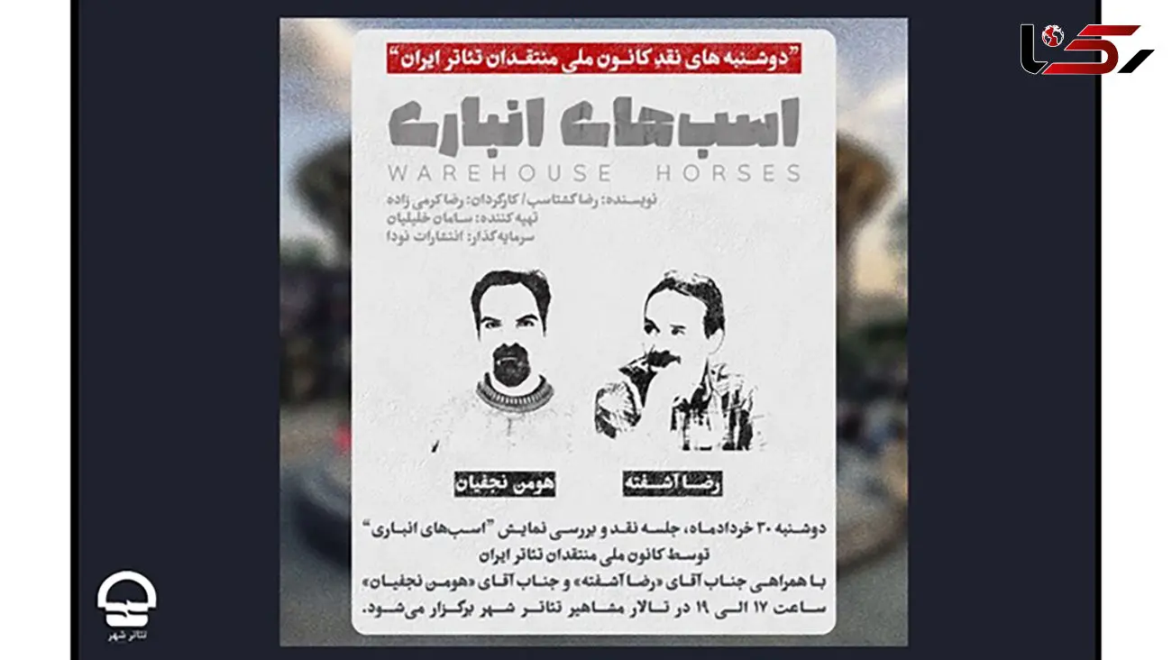 در اولین نشست از فصل تازه ویژه برنامه «دوشنبههای نقد تئاتر» کانون ملی منتقدان تئاتر ایران، جلسه نقد و بررسی نمایش «اسبهای انباری» ساعت ۱۷ روز دوشنبه ۳۰ خرداد با حضور رضا آشفته منتقد، پژوهشگر، مدرس تئاتر و عضو کانون ملی منتقدان تئاتر ایران)، هومن نجفیان (منتقد، پژوهشگر تئاتر و عضو کانون ملی منتقدان تئاتر ایران) و عوامل اجرایی نمایش در تالار مشاهیر مجموعه تئاتر شهر برگزار می شود.