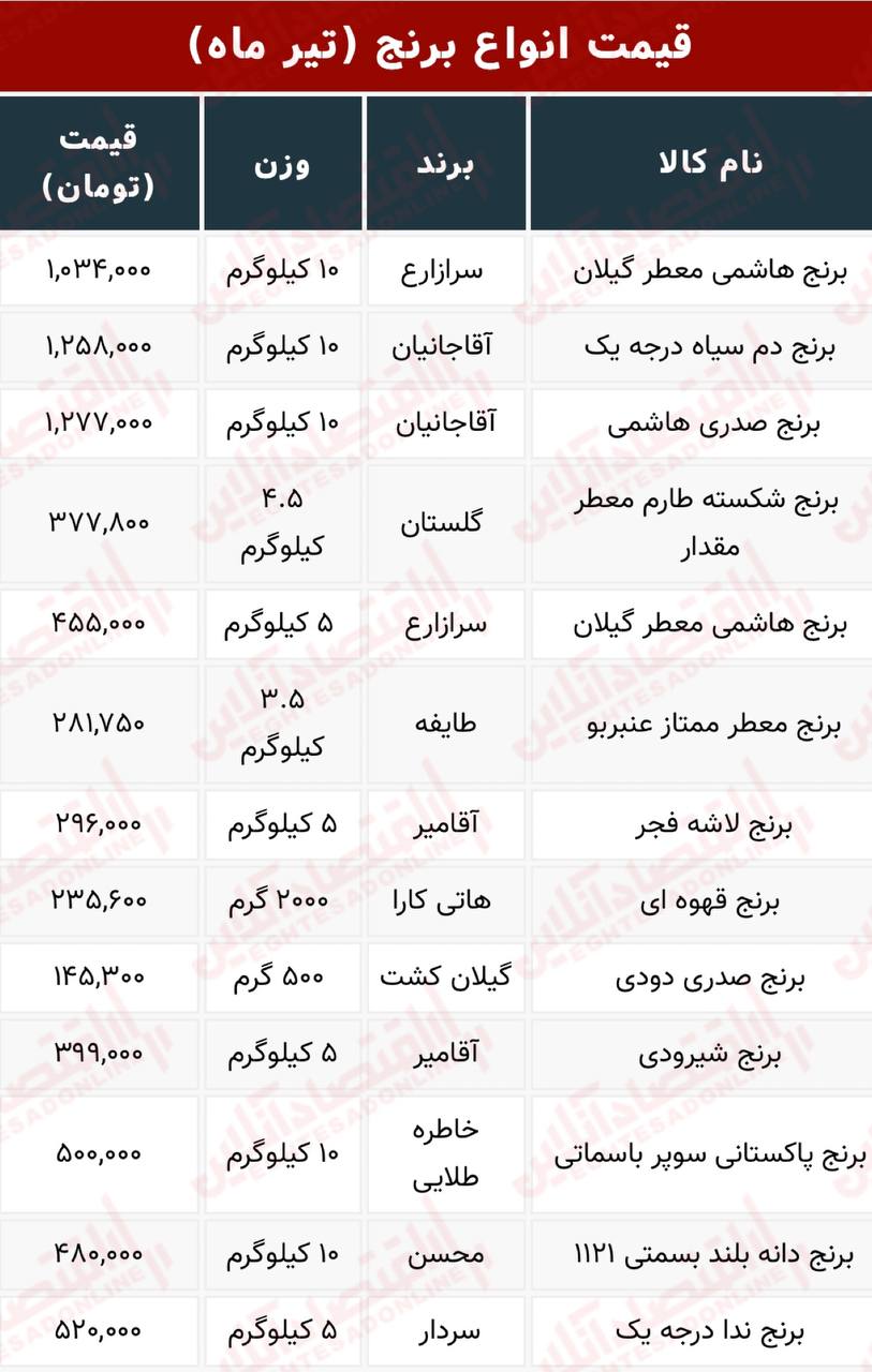 قیمت انواع برنج!