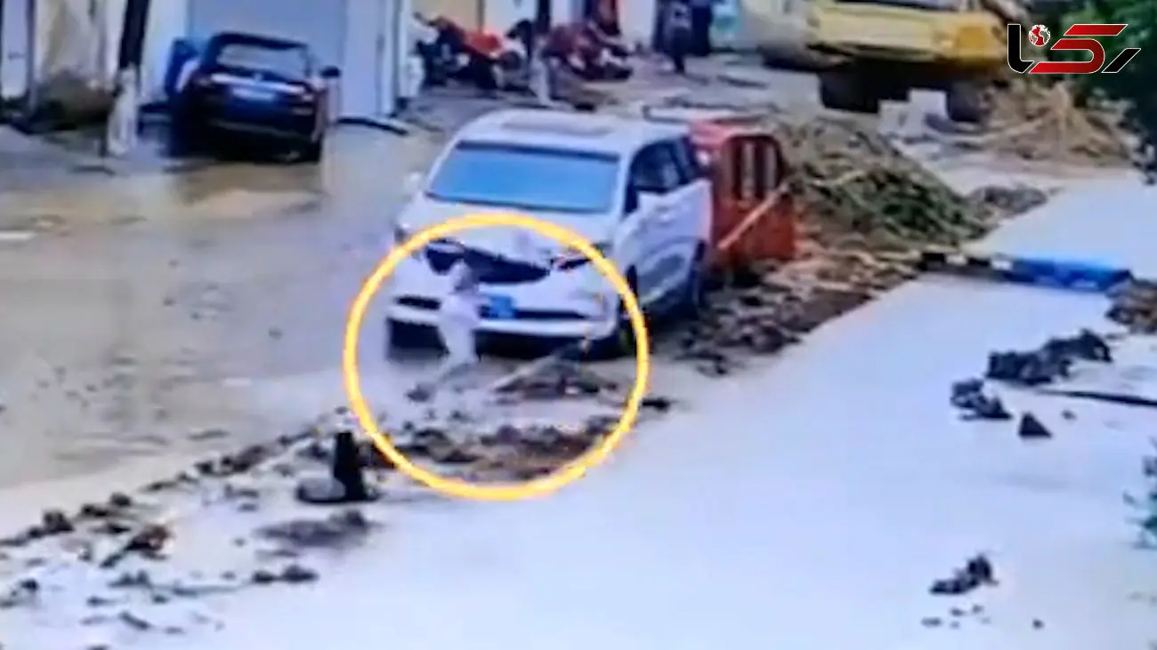فیلم لحظه نجات پسر بازیگوش از غرق شدن در وسط خیابان / ببینید