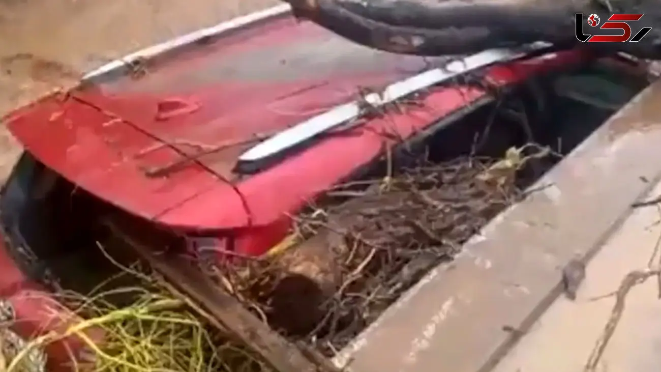 فیلم نفسگیر از نجات یک زن از سیلاب / داخل خودرویش بین سیل حبس شده بود