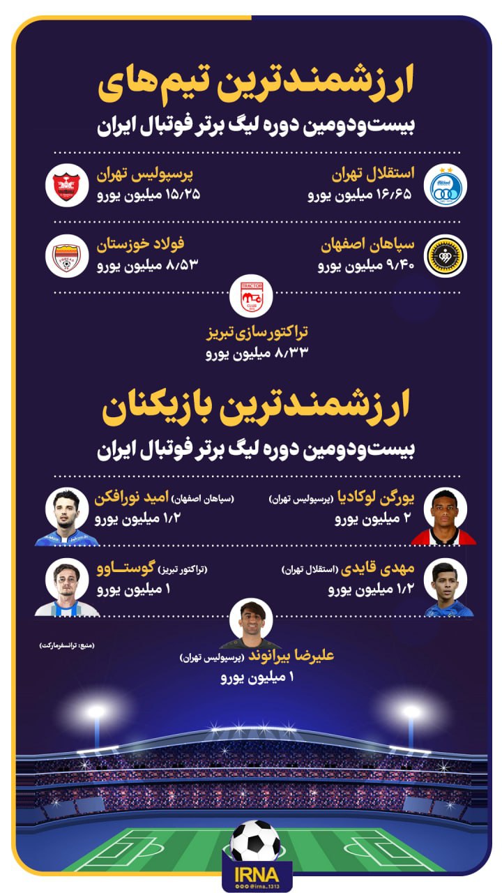 ارزشمند‌ترین بازیکن و تیم‌های بیست‌ودومین دوره لیگ ‌برتر ایران را بشناسید