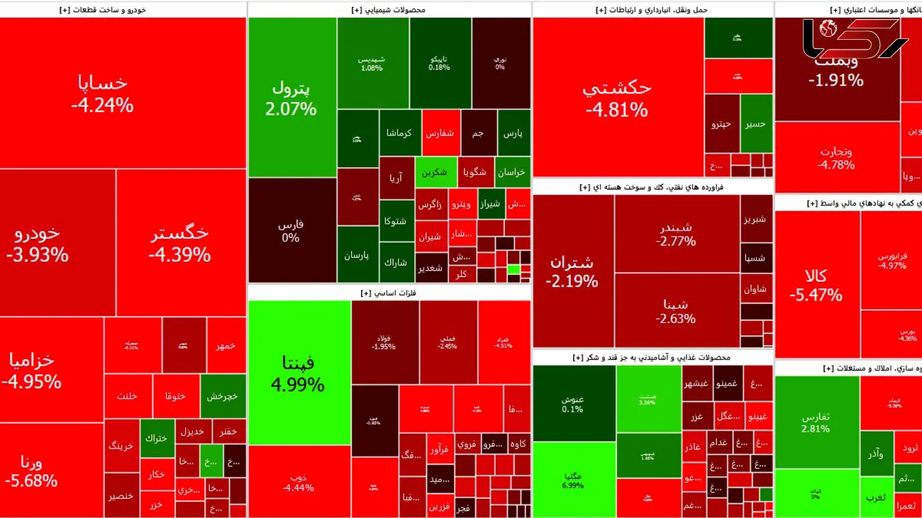 نمادهای فارس، حکشتی، شستا، شپنا، فملی، شبندر، وبملت بیشترین تاثیر منفی را بر بورس امروز گذاشتند.