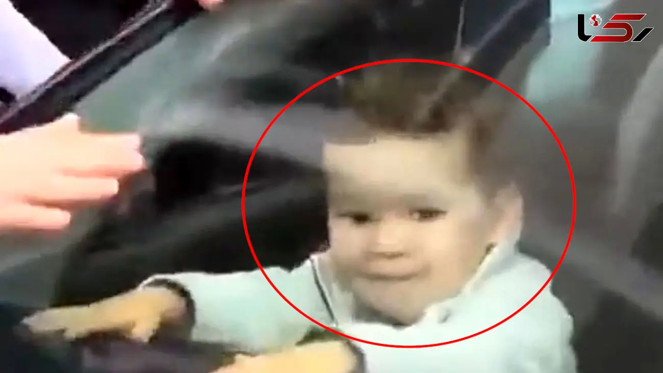 ولی با هوش بودن کودک خرد سال باعث نجات او و باز شدن درب ماشین شد >