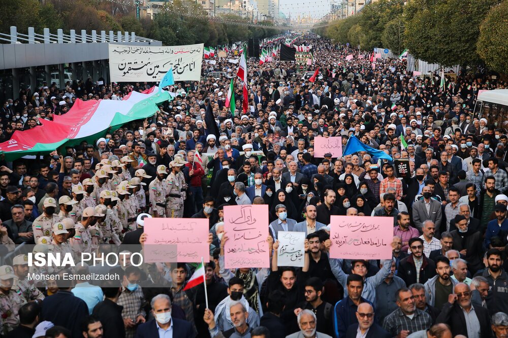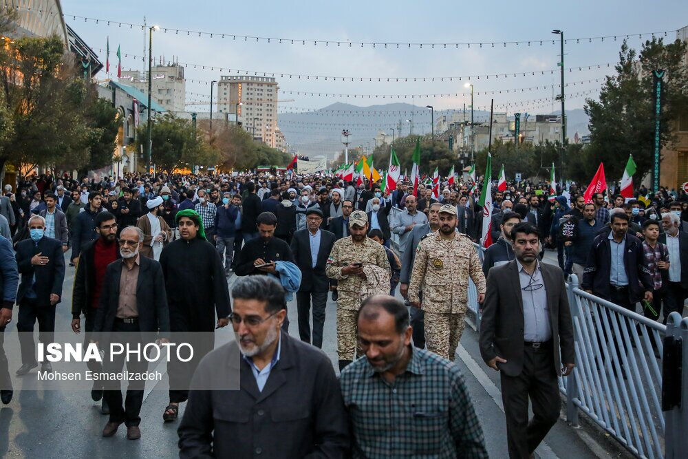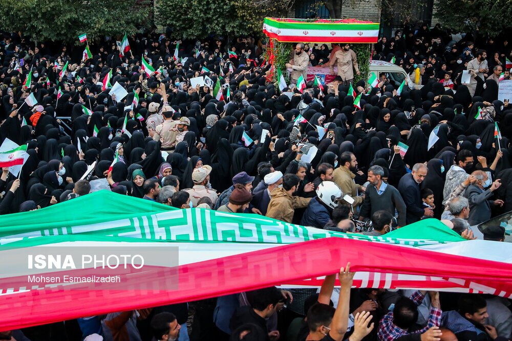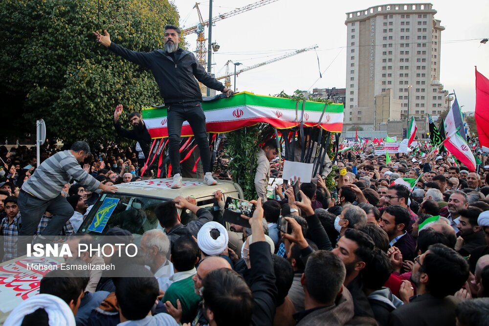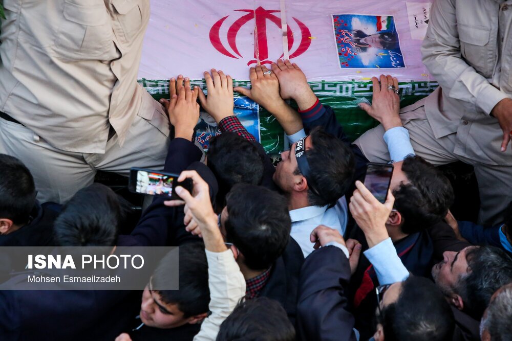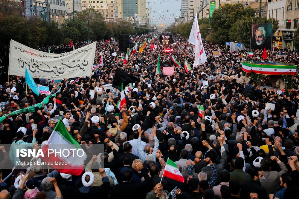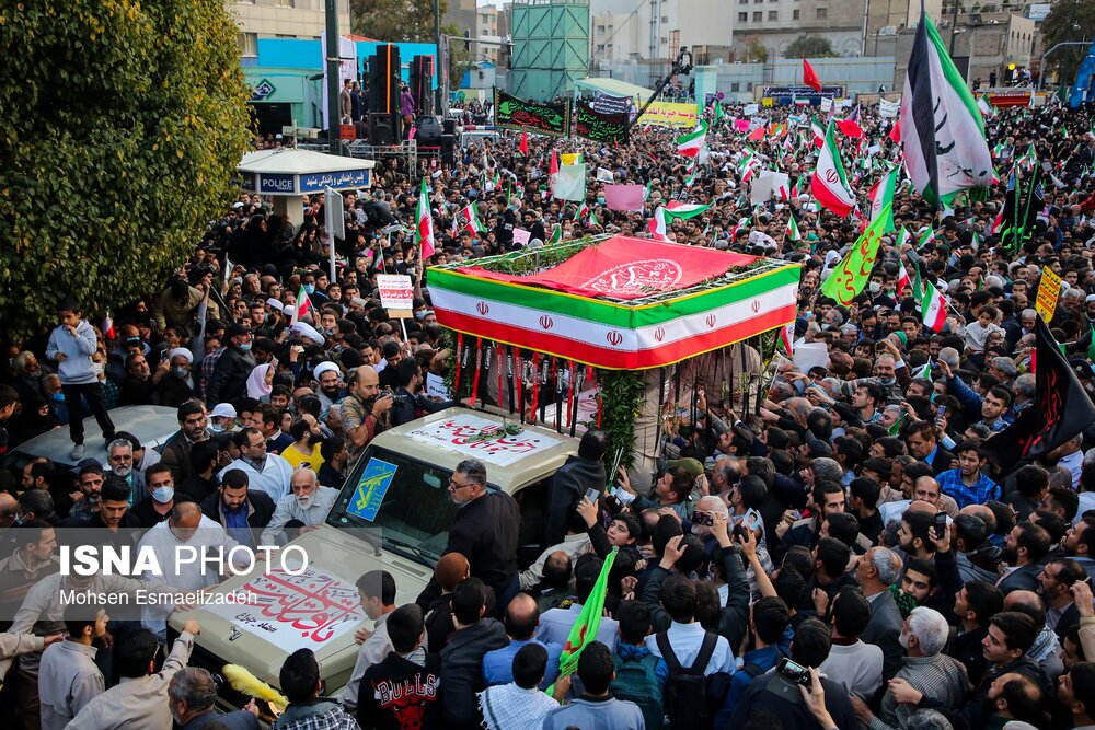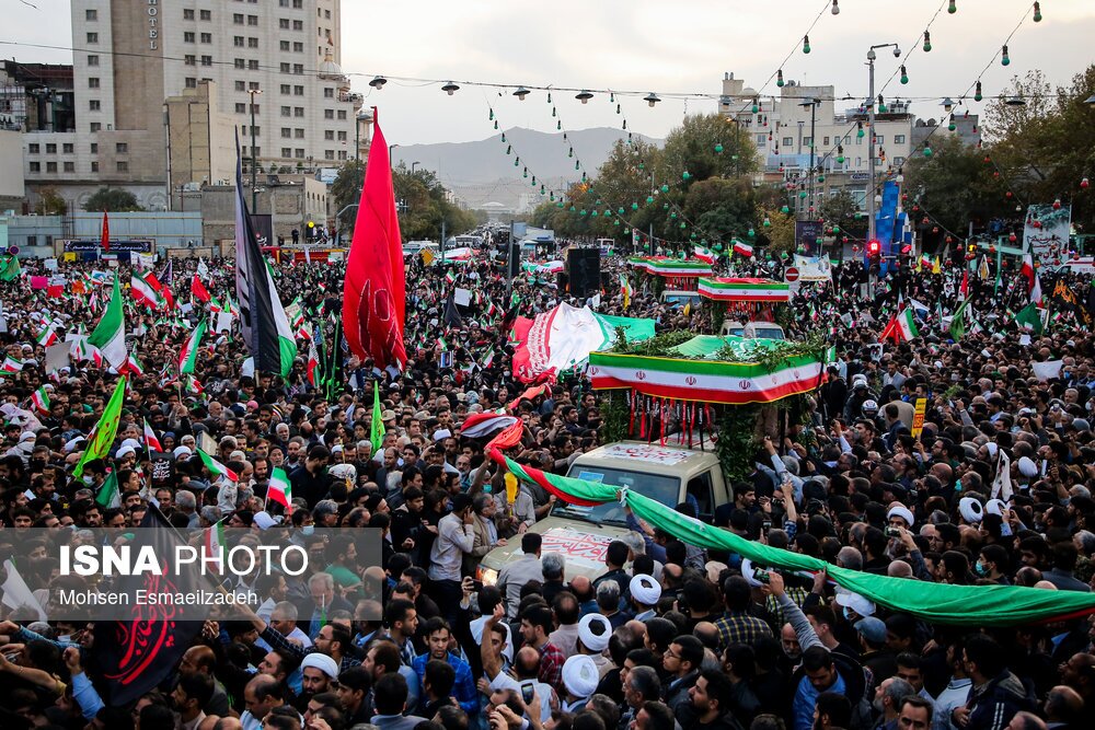 مراسم تشییع شهدای حمله تروریستی به حرم شاهچراغ، عصر شنبه ۷ آبان ۱۴۰۱، با حضور اقشار مردم مشهد از میدان بسیج به سمت حرم مطهر رضوی برگزار شد./ عکس: محسن اسماعیلزاده