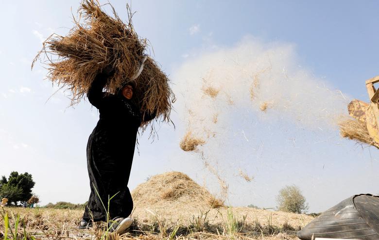 برداشت برنج از یک شالی در حومه شهر قاهره مصر در فصل خشکسالی شدید/ رویترز