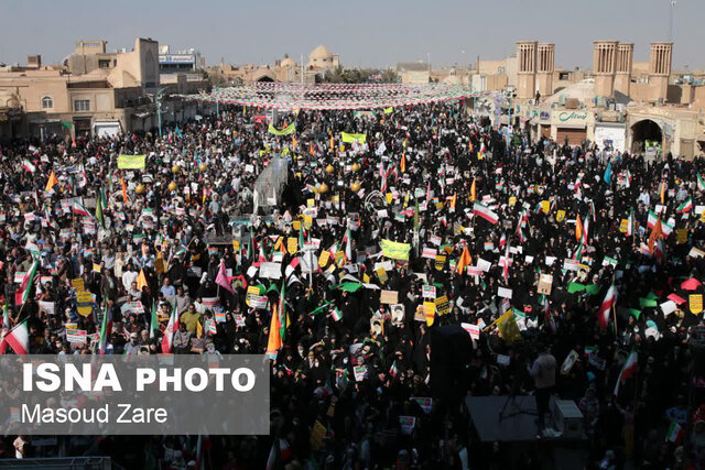 این مراسم شهر یزد از ساعت ۱۰ صبح با اجتماع پرشور مردم دارالعباده در حسینیه امیرچخماق آغاز شد و راهپیمایان ضمن سر دادن شعارهای ضد استکباری به سمت مسجد ملااسماعیل، محل برگزاری نماز جمعه که امروز به امامت آیت الله «محمدرضا ناصری» نماینده ولی فقیه در استان و امام جمعه یزد اقامه میشود، حرکت کردند.