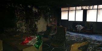 تقریباً تمامی وسایل این دفتر اعم از کتابها، صندلیها، دستگاه فکس، کشوها و میز جلسات، تخته و تصاویر در آتش سوخته و قابل استفاده نیستند.