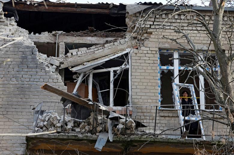 یک زن پس از بمباران منطقه دونتسک اوکراین که اخیرا تحت کنترل روسیه قرار گرفته، شیشه شکسته یکی از درهای بیمارستان این منطقه را اندازه می گیرد- نیروهای اوکراینی به منطقۀ دونتسک که تحت اشغال روسیه است، حمله کردند/ رویترز