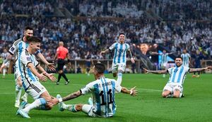 به گزارش مشرق، در چارچوب دیدار پایانی جام جهانی ۲۰۲۲ قطر، از ساعت ۱۸:۳۰ ، تیم ملی آرژانتین به مصاف تیم ملی فرانسه رفت و توانست در یکی از زیباترین فینالهای جام جهانی به تساوی ۳ بر ۳ در ۱۲۰ دقیقه مبارزه دیدنی دست یابد و در ضربات پنالتی با نتیجه ۴ بر ۲ و در مجموع ۷ بر ۵ به برتری رسید و قهرمان جام جهانی در قطر شد.