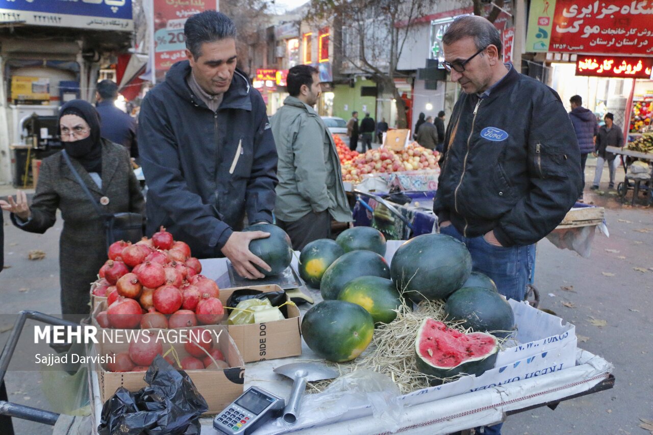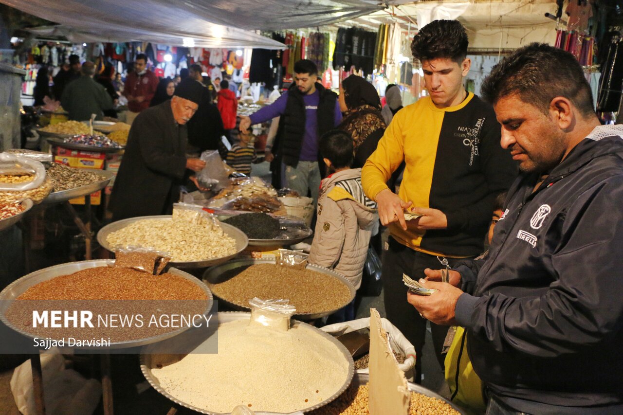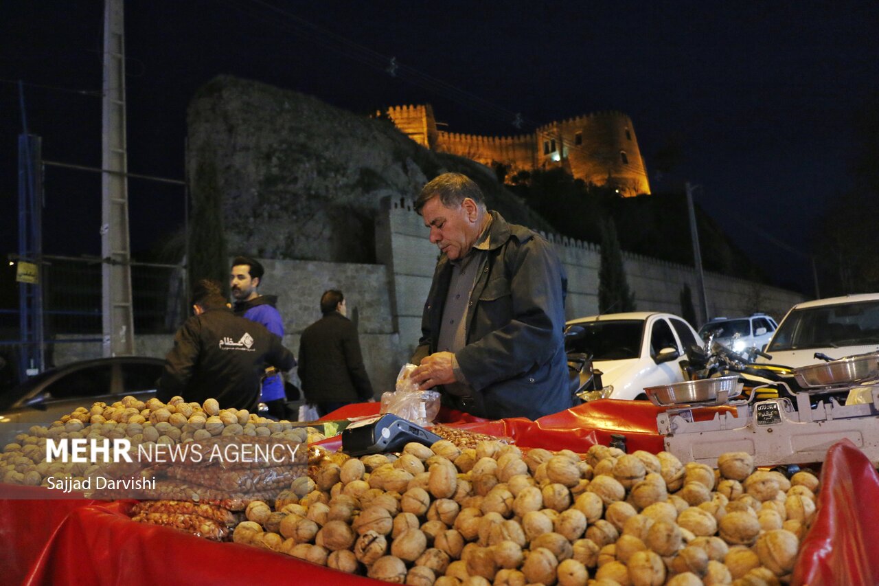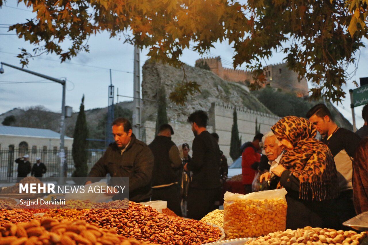 حال و هوای بازار خرمآباد در شب «یلدا» آخرین شب پاییز، گرم و پرشور بود و لرستانیها با خرید آجیل و میوه و تنقلات مختلف به استقبال جشن طولانیترین شب سال رفتند.