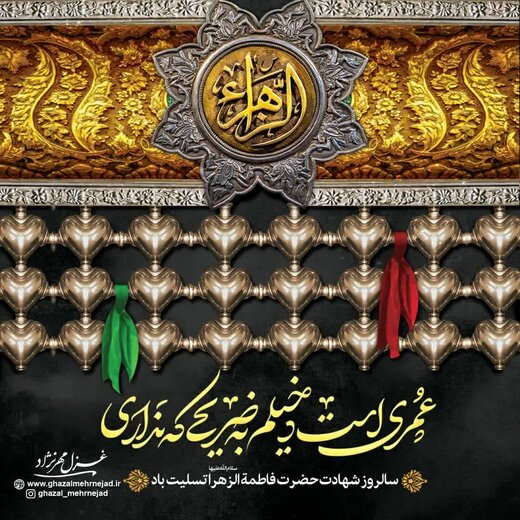 فرا رسیدن شهادت بانوی دو عالم حضرت فاطمه زهرا سلاماللهعلیها بر حضرت ولیعصر ارواحنافداه و عموم مسلمانان عالم تسلیت باد.