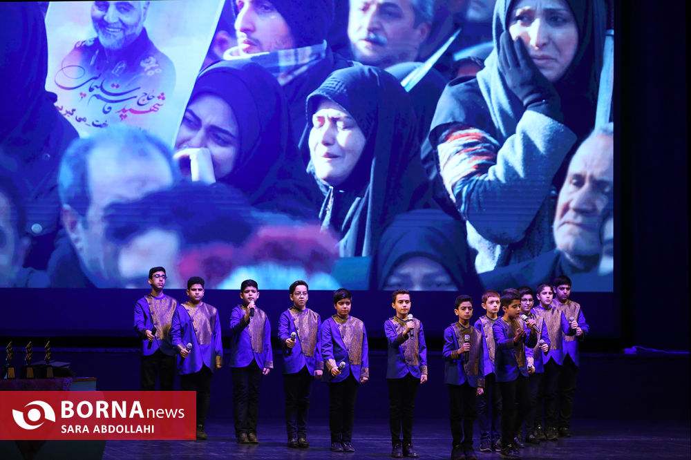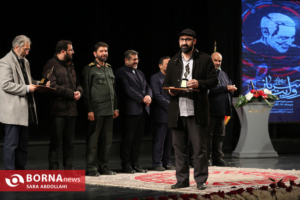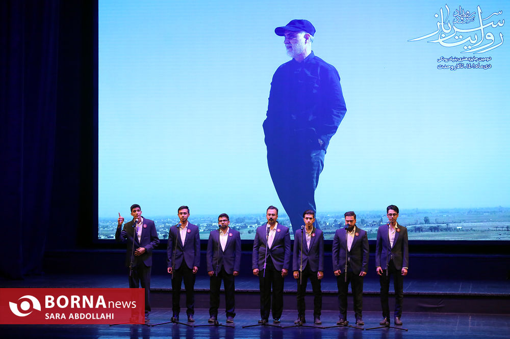 مراسم رویداد سرود روایت سرباز " دومین جایزه هنری بنیاد رودکی" به مناسبت سومین سالگرد شهید حاج قاسم سلیمانی با حضور محمدمهدی اسماعیلی وزیر فرهنگ و ارشاد و خانواده سردار سلیمانی در تالار وحدت برگزار شد .