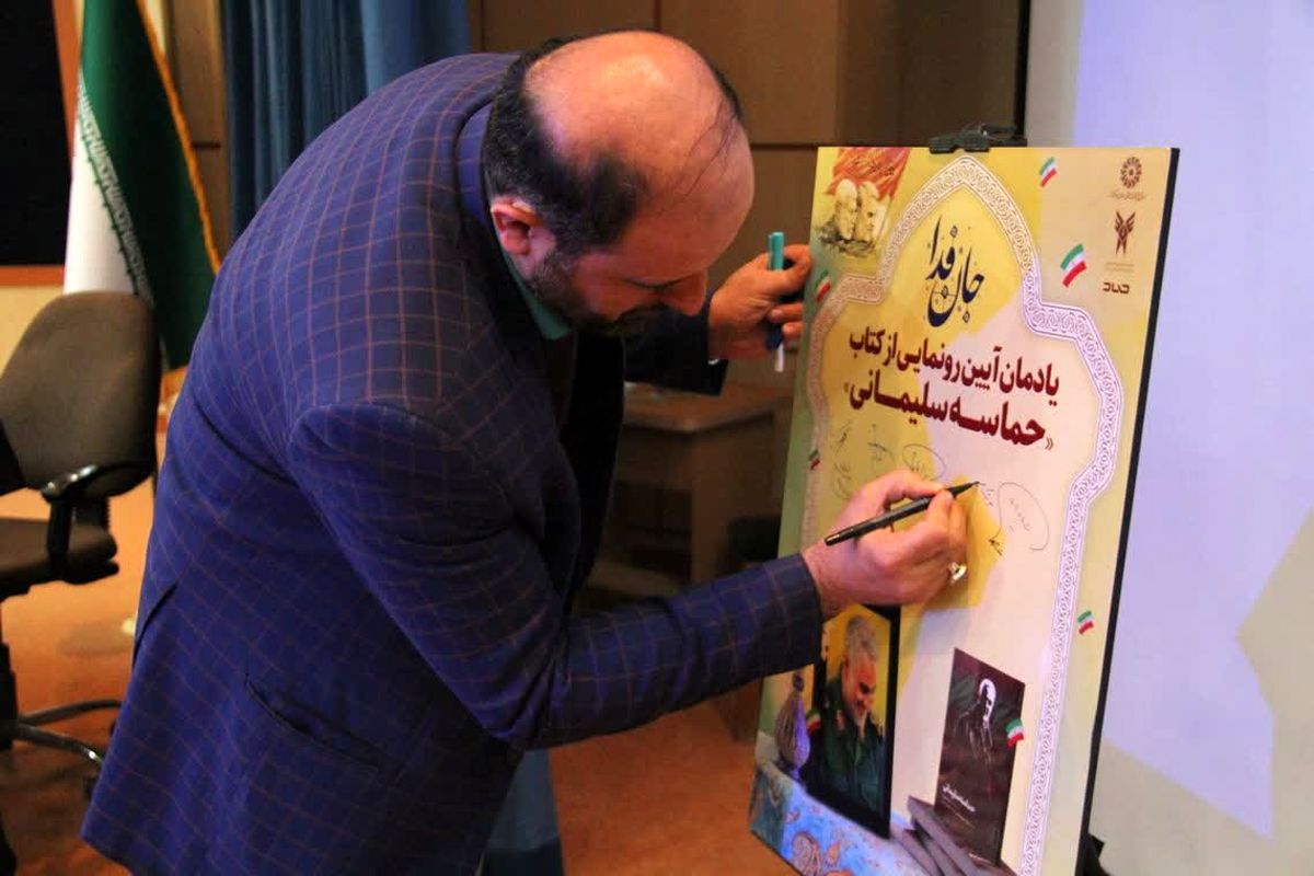 وی با اشاره به مراسم رونمایی کتاب «حماسه سلیمانی» افزود: حماسه سلیمانی کتابی است ادبی که مجموعهای از متون ادبی همچون داستان کوتاه و نمایشنامه در آن گردآوری شده است. در این کتاب دو قصهٔ کودکانه نیز وجود دارد و این به مفهوم انتقال ادبی مستمر و جنبشی است و شهید قهرمان در بین کودکان مقاومت که او را بهخوبی میشناسند و شاهدی بر ارزشهایش بودهاند، تصویر درخشانی دارد.