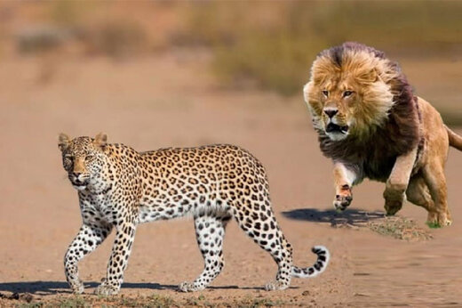 ویدیویی جالب از وحشت و فرار یک پلنگ پس از دیدن شیر نر را ببینید.