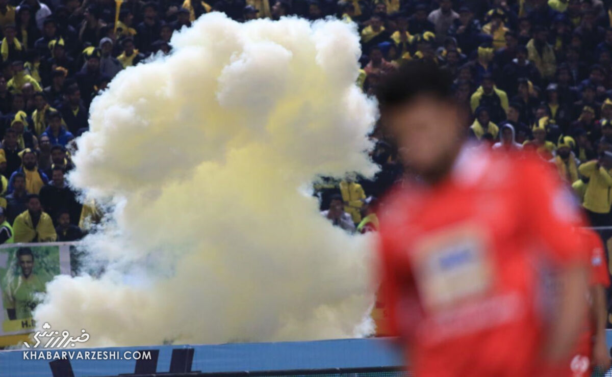 پرتاب چندین نارنجک پشت دروازه پرسپولیس جایی که عکاس ها و توپ جمع کن ها آنجا حضور داشتند موجب شد برای لحظاتی دود غلیظی در محوطه پشت دروازه پرسپولیس به هوا بلند شود.