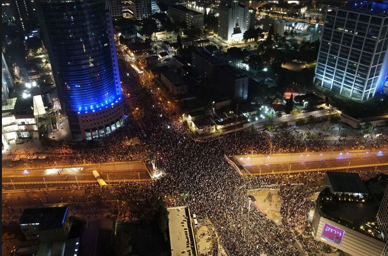 تظاهرات هفتگی بزرگ مخالفان نتانیاهو در شهر تل آویو/ خبرگزاری فرانسه