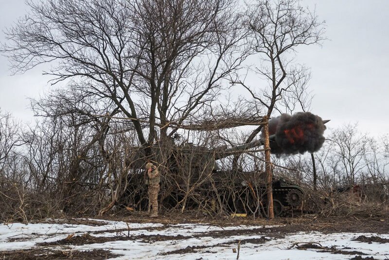 شلیک یک تانک اوکراینی به سمت مواضع روسیه در حومه شهر باخموت اوکراین/ رویترز
