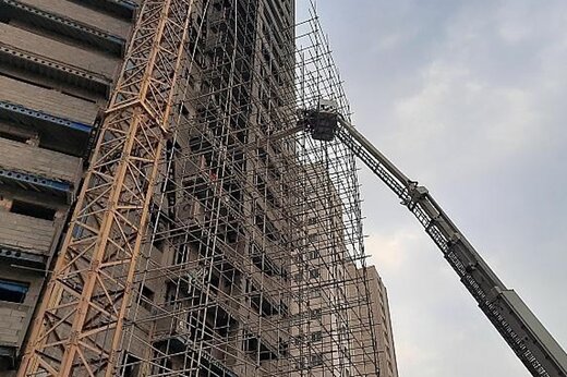 این کارگر از آپارتمان ۱۲ طبقه میافتد اما خودش میلگرد را میگیرد و سپس نجاتش میدهند.