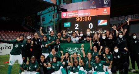 اولین بازیهای بینالمللی تیم ملی فوتبال زنان عربستان در فوریه ۲۰۲۲ مقابل تیمهای سیشل و مالدیو برگزار شد که هر دو بازی با نتیجه ۲ بر صفر به نفع عربستان تمام شد.