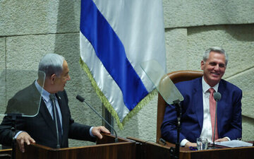 کوین مک کارتی، رییس مجلس نمایندگان آمریکا که به اراضی اشغالی سفر کرده است، در یک سخنرانی در کنست با وعده حمایت کامل آمریکا از امنیت رژیم اسراییل، ادعاهایی علیه نقش ایران در منطقه مطرح کرده و ایران را منبع اصلی «هرج و مرج» در خاورمیانه که به ادعای وی «به تامین مالی تروریسم، مسلح کردن شبیهنظامیانی که نیروهای نیابتی آن هستند و تلاش برای دستیابی به تسلیحات اتمی ادامه میدهد» خواند.