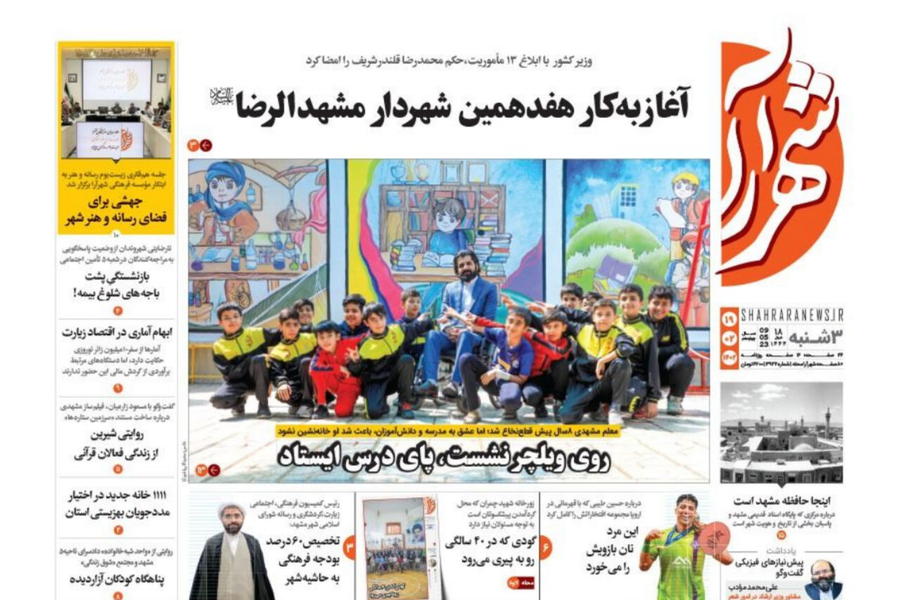 صفحه اول روزنامه‌های خراسان رضوی ۱۹ اردیبهشت ۱۴۰۲