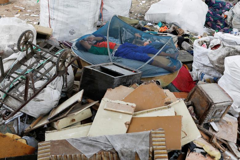 خواب یک کارگر پاکستانی در یک مرکز جمع آوری نخاله های ساختمانی در شهر کراچی/ رویترز