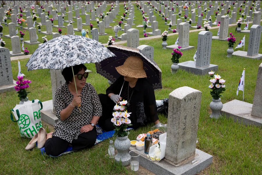 گرامیداشت روز یادبود قربانیان جنگ در گورستانی در شهر سئول کره جنوبی/ رویترز و EPA