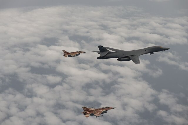 آویخای اردعی، سخنگوی ارتش رژیم صهیونیستی گفت، دو فروند جنگنده اف ۱۶ دی اسرائیلی، دو بمب افکن بی ۱ آمریکایی را که در مسیر خود از منطقه خلیج فارس از آسمان آن عبور میکردند، همراهی کردند. این سورتی پرواز در چارچوب همکاری نزدیک با ارتش آمریکا صورت میگیرد که عنصر مهمی در حفظ آسمان اسرائیل و خاورمیانه است.