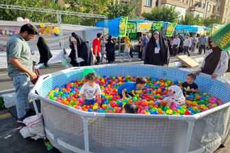 یکی از برنامههای جالب در جشن غدیر امسال، توجه به کودکان است. شهربازی سیار در مسیر راهاندازی شده است و در این بخشها حال و هوای خاصی حاکم شده است. صدای همهمه کودکان و شادی آنها غیرقابل وصف است. کودکی دست مادرش را میکشید تا او را به بخش اسباب بازی کودکان ببرد. یکی دیگر در صف بود و منتظر بود تا نوبتش شود. حضور کودکان امسال از سال گذشته پرشورتر به نظر میرسد. البته مردم برای حضور کودکان برنامهریزی کرده و در کنار وسایل بازی در مسیر، هدایای فرهنگی از گیرههای روسری تا خودکار و مدادهای منقش به نام و القاب امام علی (ع) توزیع میکنند.
