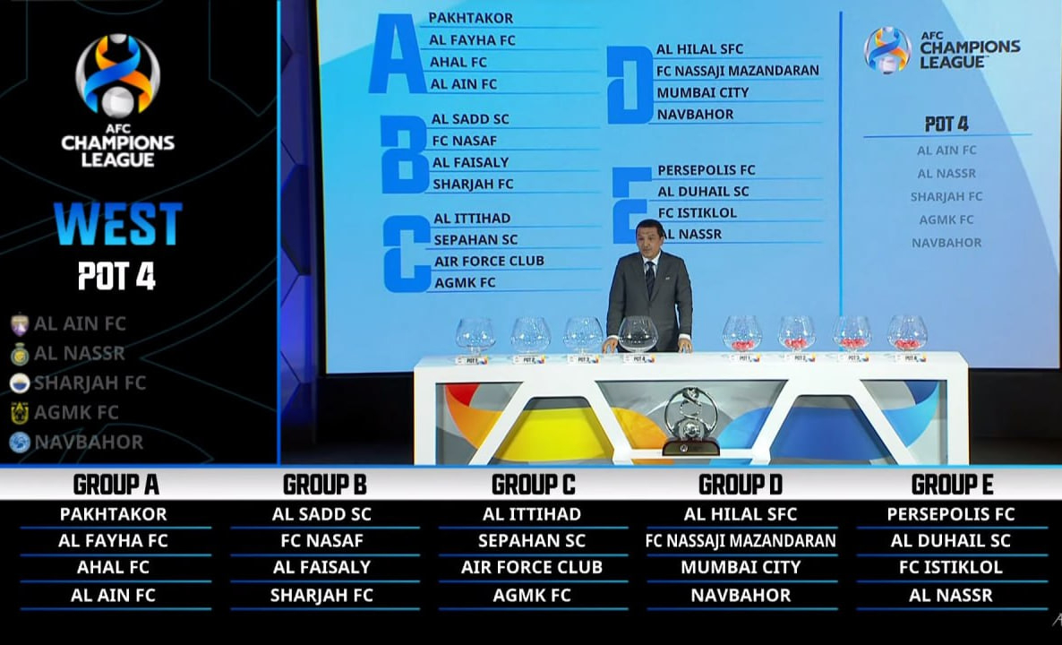 صبح امروز، مراسم قرعه کشی در مالزی برگزار شد و 20 تیم از غرب آسیا و 20 تیم از شرق در پنج گروه چهار تیمی قرار گرفتند تا با حضور ستاره های نامدار اروپایی در تیم های سعودی، شاهد برگزاری یک فصل جذاب و مهیج باشیم.