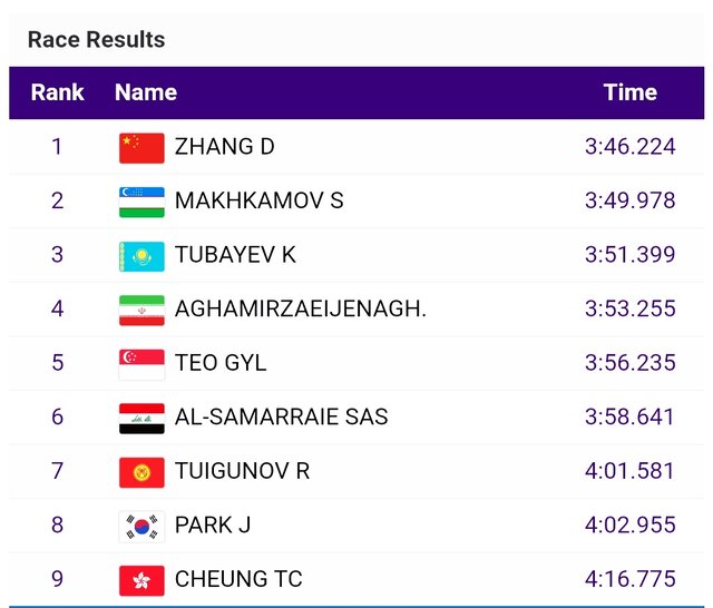 قایقرانان چین، ازبکستان و قزاقستان به ترتیب اول تا سوم شدند.