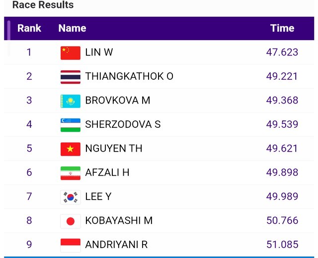کانویکنفره ۲۰۰ متر زنان(هیوا افضلی): ششم