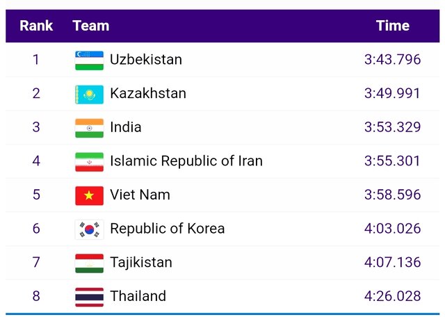 نمایندگان ازبکستان، قزاقستان و هند به ترتیب اول تا سوم شدند.