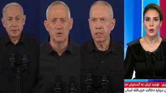 سیاه پوش شدن بنیامین نتانیاهو، یوآف گالانت و بنی گانتز در کنفرانس مطبوعاتی مشترک