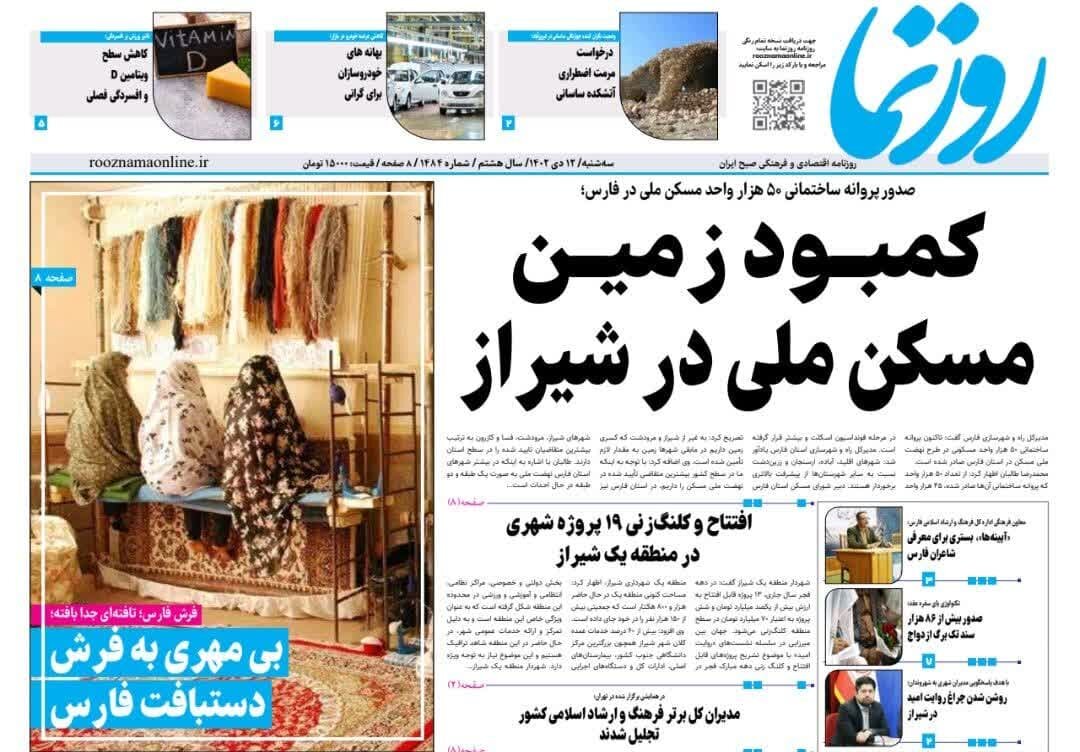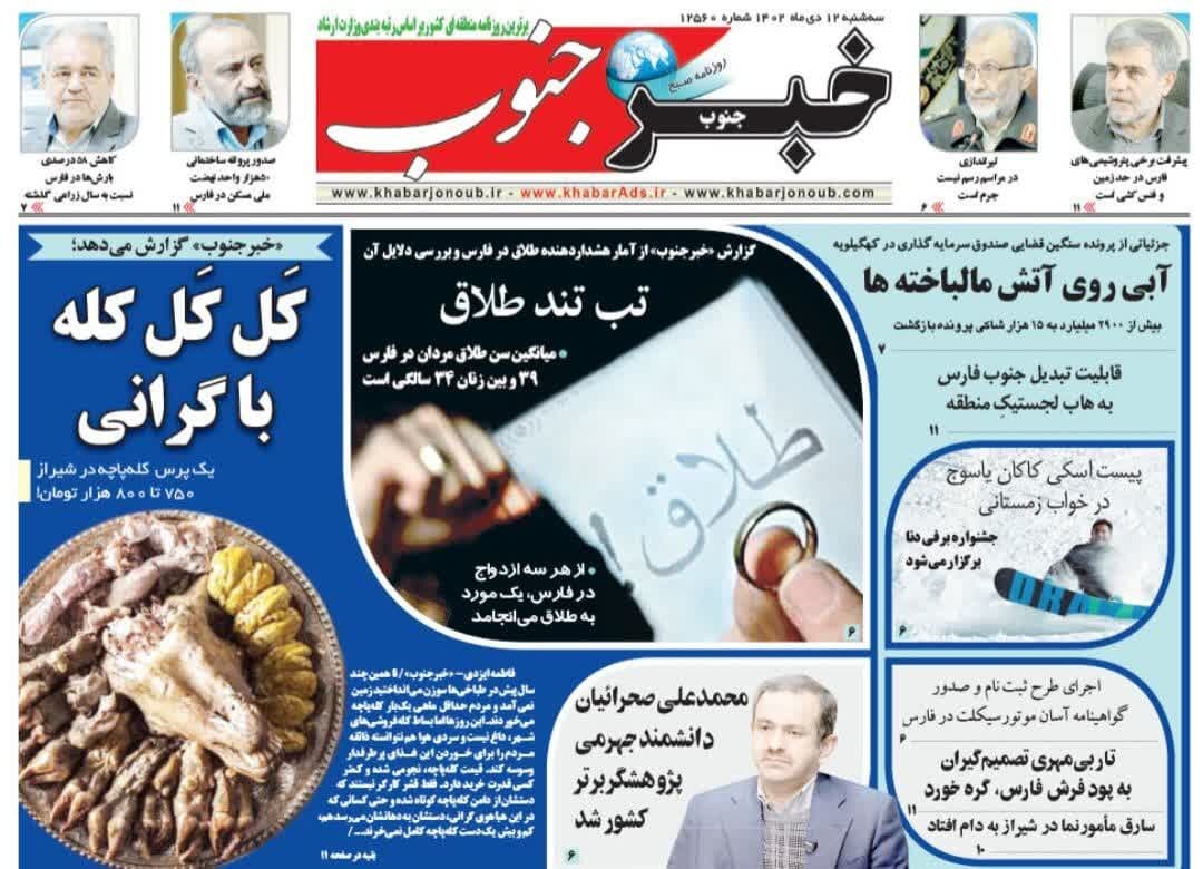 روزنامه‌های استان فارس سه‌شنبه ۱۲ دی ماه