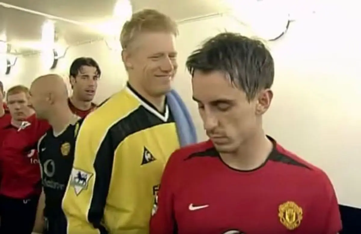 ورزش سه: پیتر اشمایکل و گری نویل برای چندین سال با یکدیگر همتیمی بودند و در منچستر یونایتد به جام های زیادی دست یافتند اما سال ۲۰۰۲ جزو معدود دفعاتی بود که این دو نفر مقابل یکدیگر قرار گرفتند.