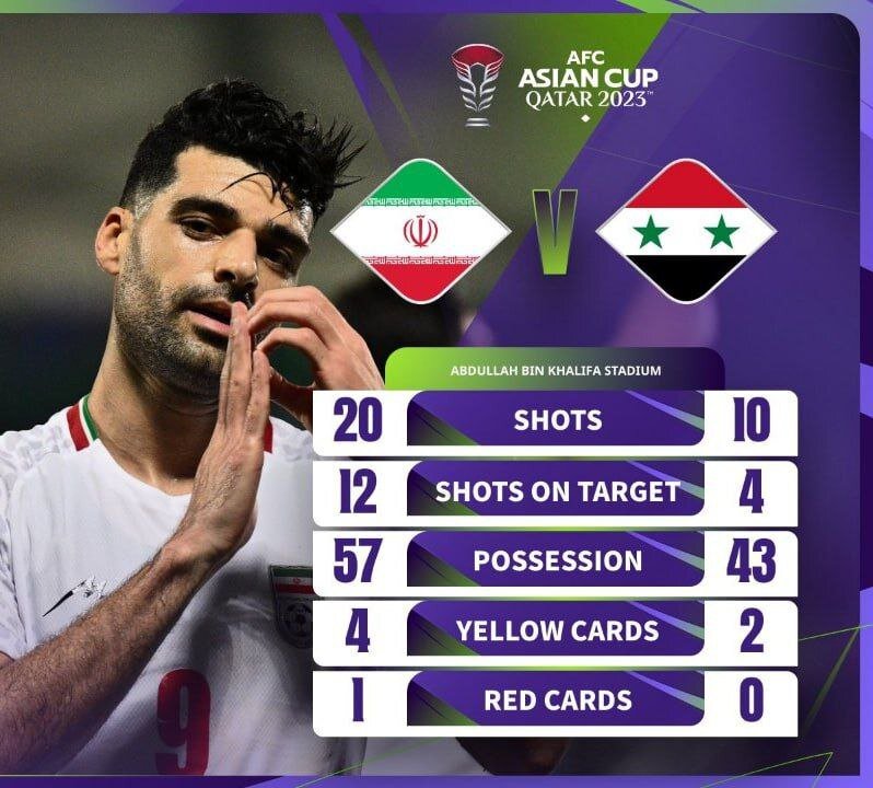 تیم ملی ایران با این آمار به راحتی میتوانست سوریه را شکست دهد اما سخت ترین کار ممکن را انتخاب کرد و در ضربات پنالتی موفق شد این تیم را مغلوب کند.