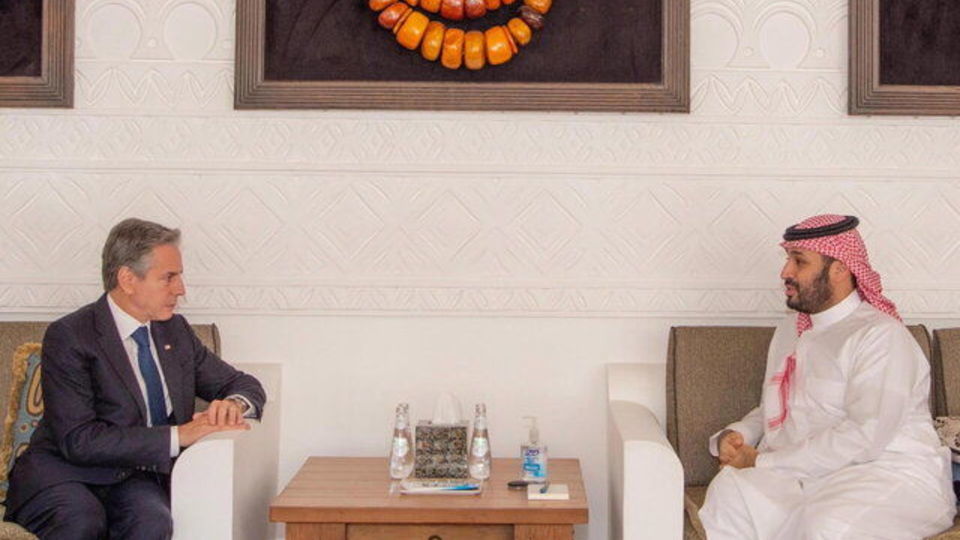 وزارت خارجه آمریکا اعلام کرد بلینکن در دیدار با ولیعهد عربستان بر لزوم جلوگیری از گسترش بیشتر درگیری ها تأکید کرد.