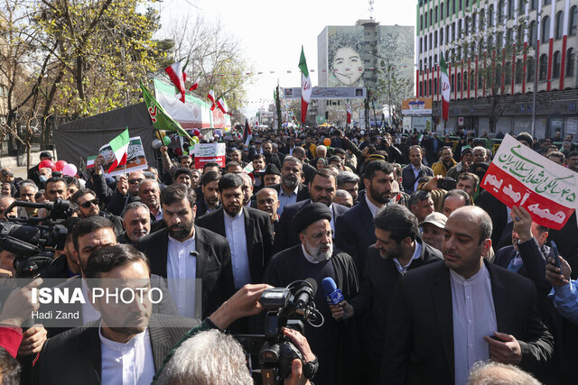 رئیس قوه مجریه در ادامه تاکید کرد: اقتدار نظامی و بنیه دفاعی کشور برای همه دشمنان که تجاوز به این آب و خام را در سر میپرورانند بازدارنگی دارد. امروز میبینید که ادبیات تهدید کاملا به حاشیه رفته و دیگر کسی از این حرفها که گزینه نظامی روی میز است نمیزند و کسی در فکر و زبانش در فکر تجاوز نیست و این به خاطر بنیه دفاعی، نیروهای توانمند و این حضور میلیونی مردم در سراسر کشور است.